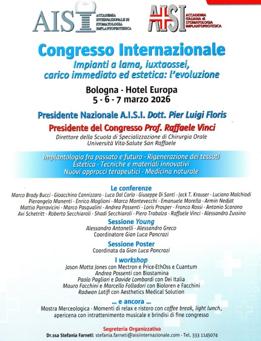 I dott. Belotti, Pasqualini, Rossi e Dal Carlo hanno partecipato, quali relatori, al corso di aggiornamento multidisciplinare organizzato da OMCeO Roma dal titolo “Chirurgia Implanto-Protesica tra passato, presente e futuro. Le diverse sistematiche a confronto.” Il Presidente Arass Dott. Enrico Moglioni si è impegnato per concretizzare questo evento trovando adeguata sponda nell’Ordine di Roma. Si è così potuto ottenere il risultato di coinvolgere numerosi relatori di alta qualità (oltre ai su citati, Moglioni, Cosma, Pistilli, Diotallevi, Valentini, Bramanti, Caliendo, Andreasi Bassi, D'Ambrosio, Piattelli, Tumedei) che hanno offerto al numeroso uditorio molti spunti di approfondimento e discussione, spaziando dalla diagnosi radiologica, alla sostituzione del singolo dente, alle grandi riabilitazioni, conservative e complesse. Si è trattato di un’altra occasione in cui, finalmente, diverse scuole si sono rese disponibili a collaborare per collocare le diverse tecniche riabilitative nei loro giusti ambiti, senza alcuna contrapposizione.